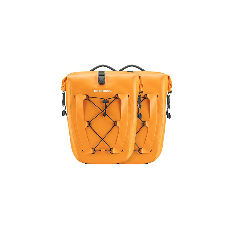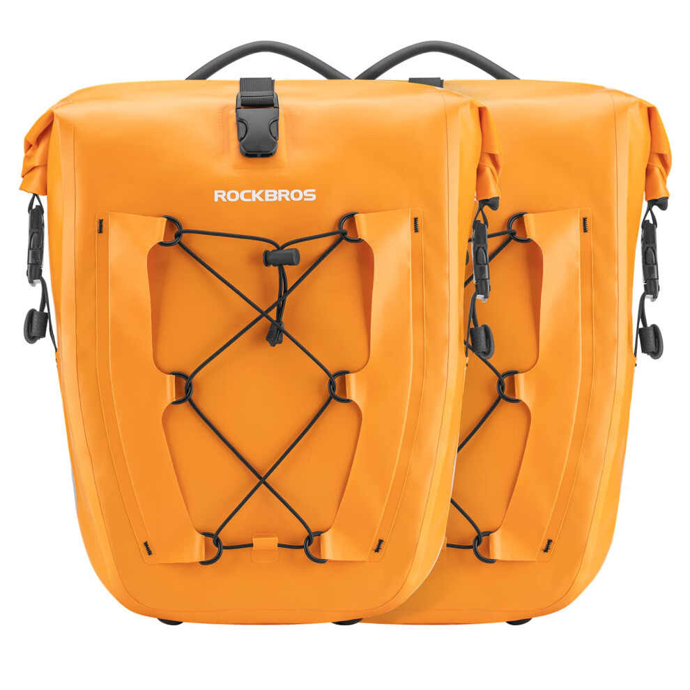 ROCKBROS Bike Pannier Bag 25L-32L 100% Waterproof Rear Rack Bicycle Bag for Rear Carrier Bike Handbag for Cycling Touring Travelling Orange 2PCS