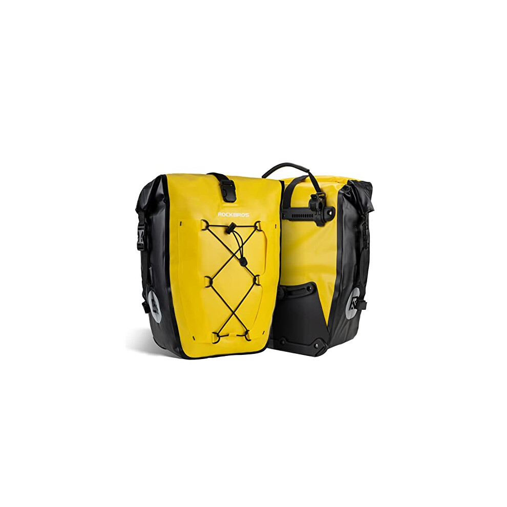 ROCKBROS Bike Pannier Bag 25L-32L 100% Waterproof Rear Rack Bicycle Bag for Rear Carrier Bike Handbag for Cycling Touring Travelling Yellow 2PCS