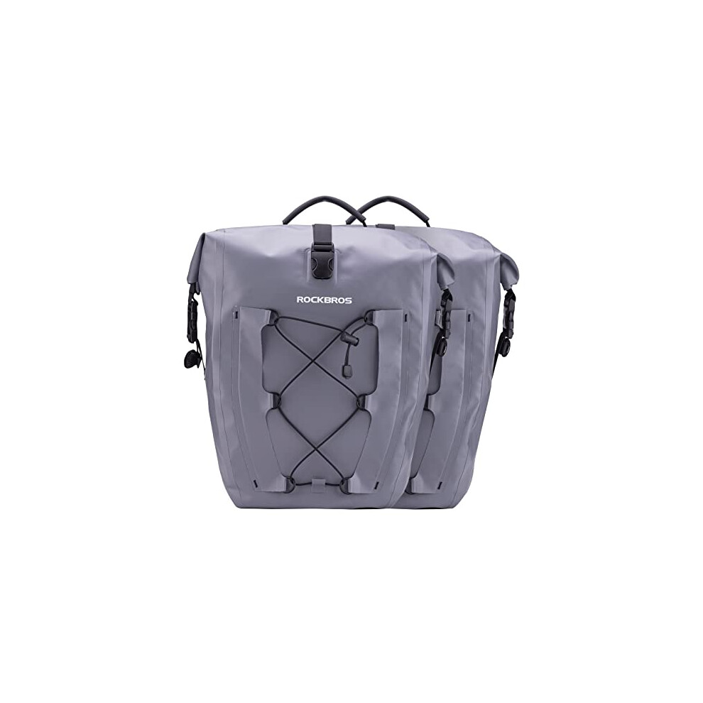 ROCKBROS Bike Pannier Bag 25L-32L 100% Waterproof Rear Rack Bicycle Bag for Rear Carrier Bike Handbag for Cycling Touring Travelling Grey 2PCS