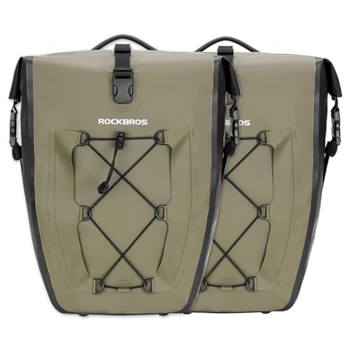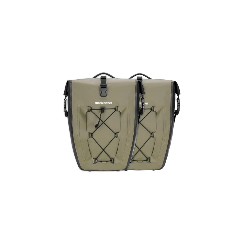 ROCKBROS Bike Pannier Bag 25L-32L 100% Waterproof Rear Rack Bike Bag Bicycle Bag for Rear Carrier Bike Handbag for Cycling Touring Travelling Green 2PCS