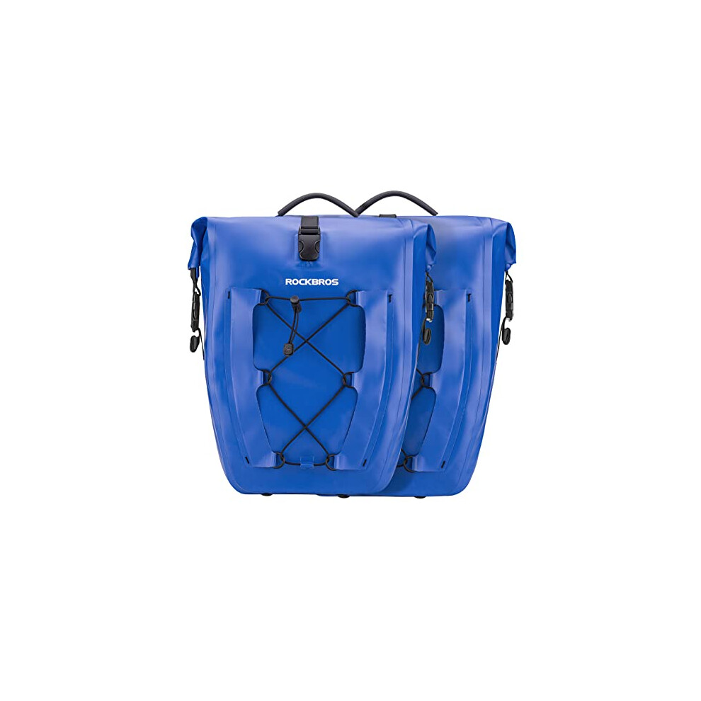 ROCKBROS Bike Pannier Bag 25L-32L 100% Waterproof Rear Rack Bicycle Bag for Rear Carrier Bike Handbag for Cycling Touring Travelling Blue 2PCS
