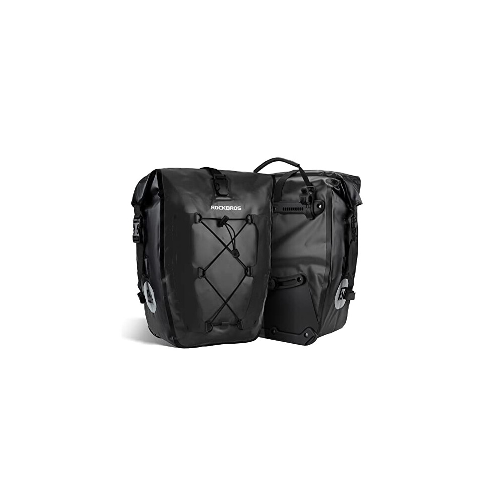 ROCKBROS Bike Pannier Bag 25L-32L 100% Waterproof Rear Rack Bicycle Bag for Rear Carrier Bike Handbag for Cycling Touring Travelling Black 2PCS