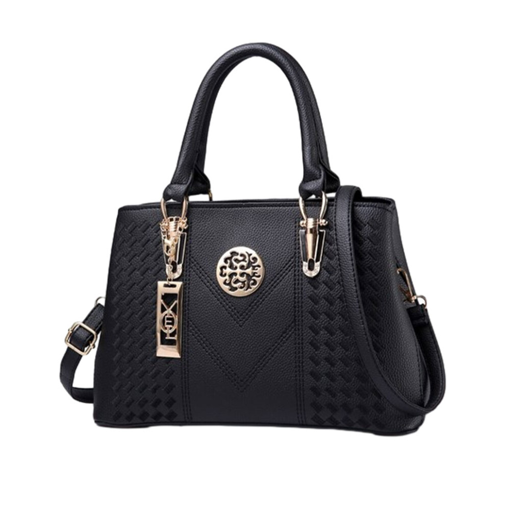 (Black) Woman PU Shoulder Bag Tote Travelling Crossbody Handbags Organizers
