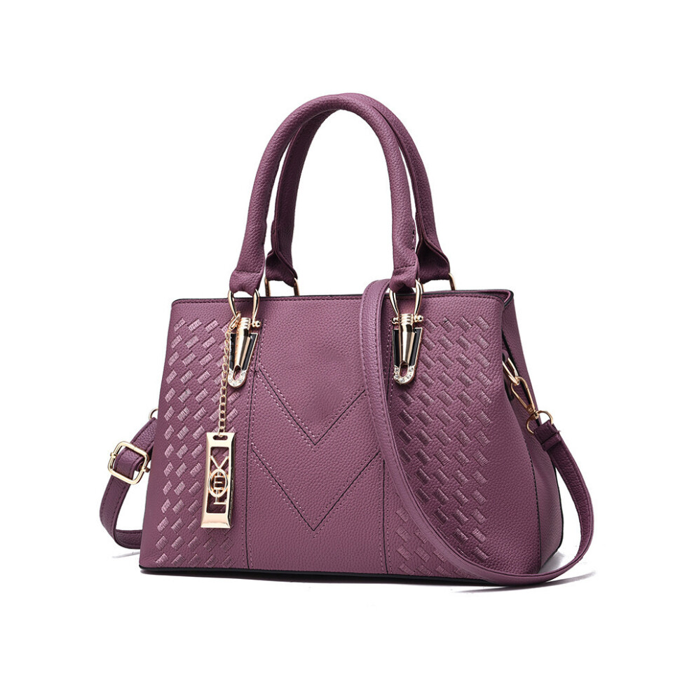 (Purple) Woman PU Shoulder Bag Tote Travelling Crossbody Handbags Organizers