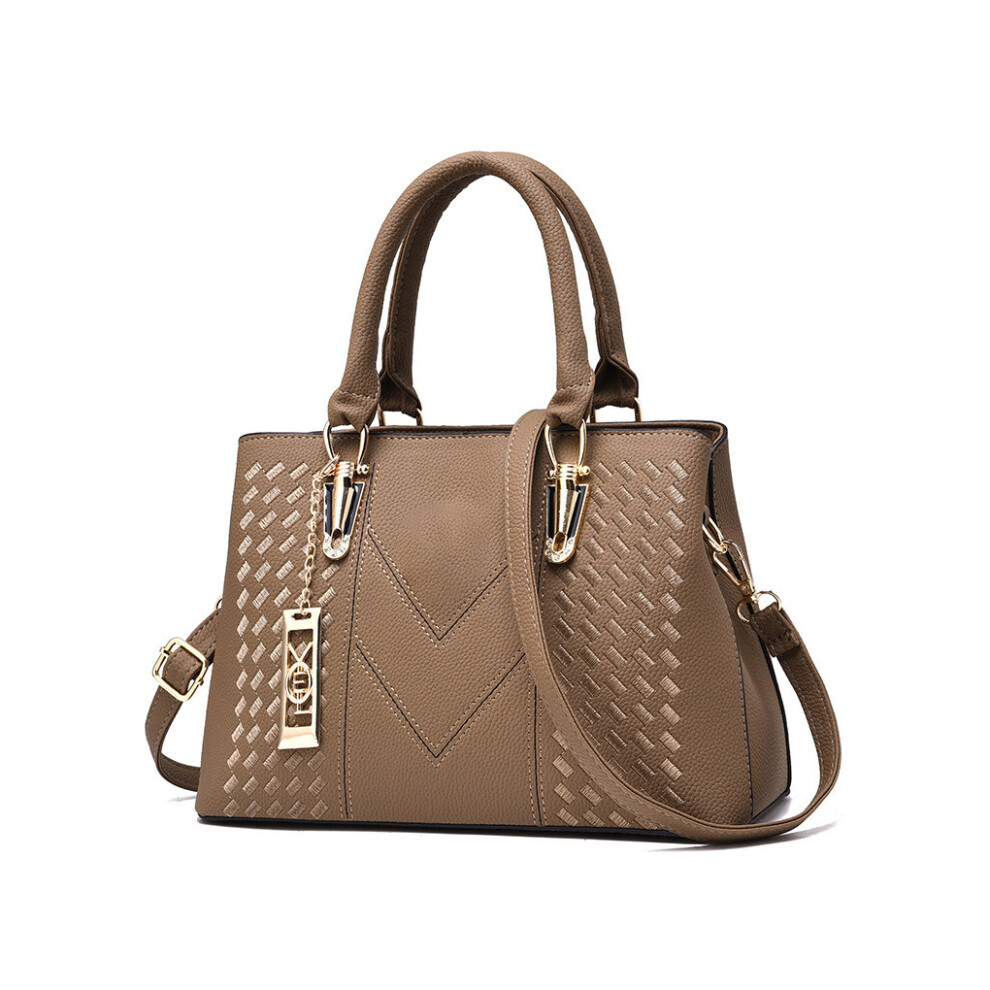 (Khaki) Woman PU Shoulder Bag Tote Travelling Crossbody Handbags Organizers