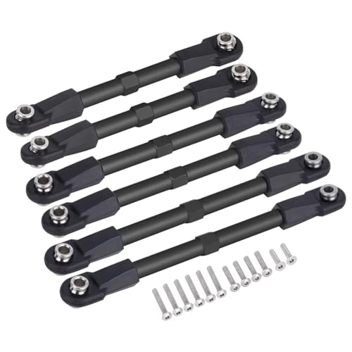 RC Car Parts Compatible With Traxxas BL-2S For Slash 4x4 4WD 1/10 RC Car Upgrade Parts 6Pcs Adjustable Aluminum Steering Rod Link Set(Black)