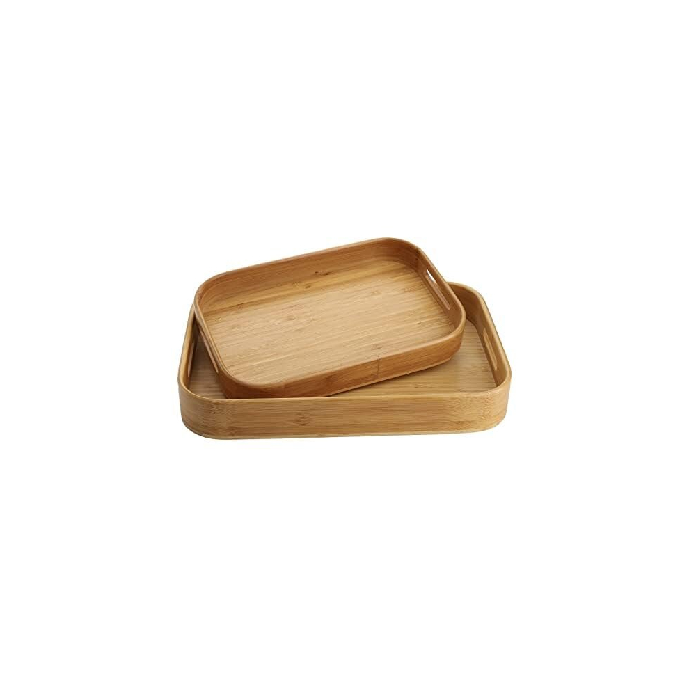 Set of 2 Bamboo Serving Tray, Solid Wood Breakfast Tray with Handles, Large Bamboo Food Tray Great for Breakfast, Tea, Coffee, Bar, Parties, 39cm L x