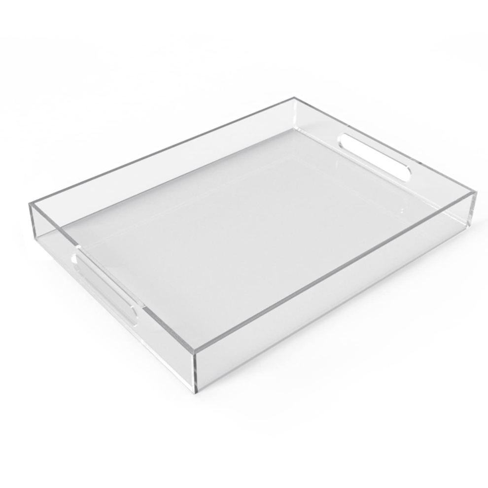 Allhercom Acrylic Serving Tray (12x16x2Inch) with Handles-Spill Proof-Clear Decorative Tray for Appetizer,Breakfast-Countertop Organizer Storage Tray