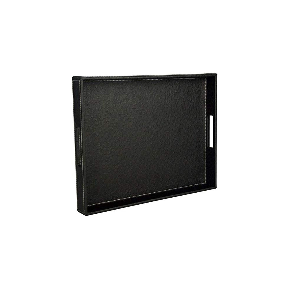 Ranslen Ostrich Faux Leather Rectangular Breakfast Coffee Table Serving Tray with Handles for Breakfast in Bed Extra Large