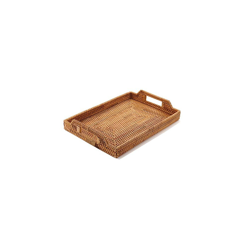 YANGQIHOME Hand-Woven Rattan Serving Tray with Handles for Breakfast, Drinks, Snack for Dining/Coffee Table (14.5 inch (37 cm), Rectangular)