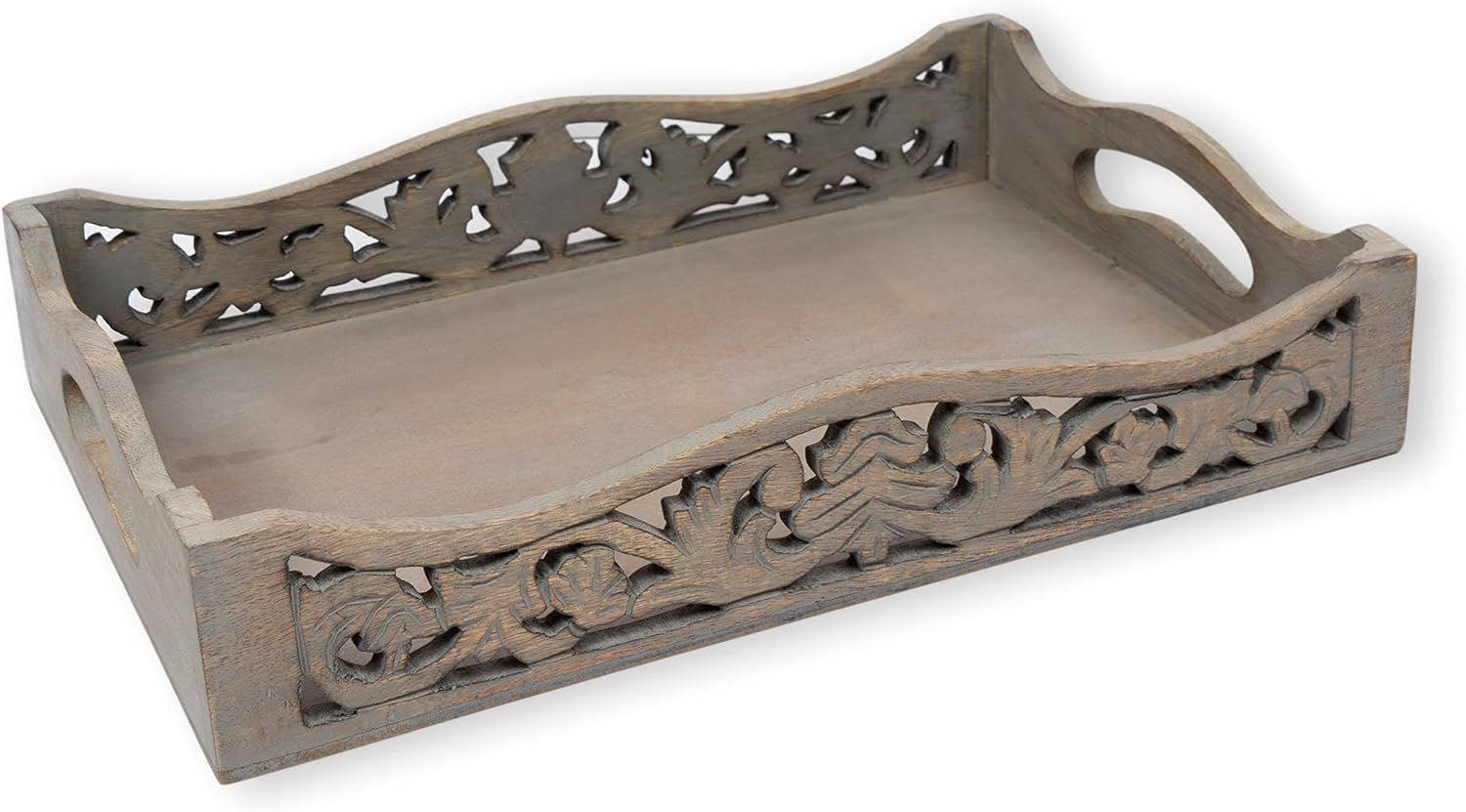 Handmade Wooden Tray with Handles | Wood Ottoman Tray, Serving Tray for Breakfast in Bed, Tea, Coffee with Cutout Handles | Grey Washed Finish,