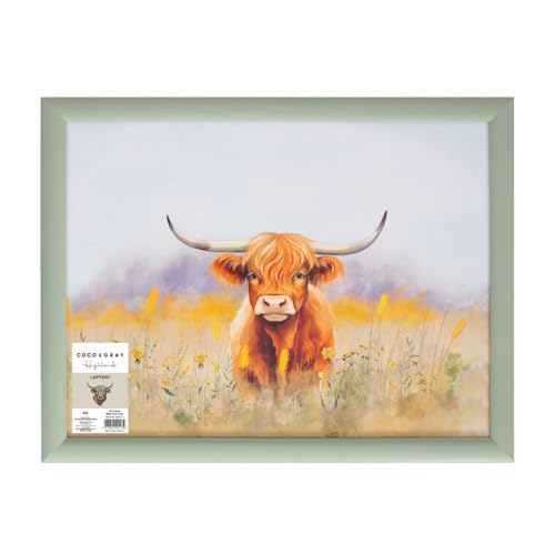 YöL Highland Cow Print Wooden Lap Tray - Breakfast In Bed Lunch Dinner Snack Food Serving - Laptop Studying Arts Crafts Adult Kids -Green Animal Print Design