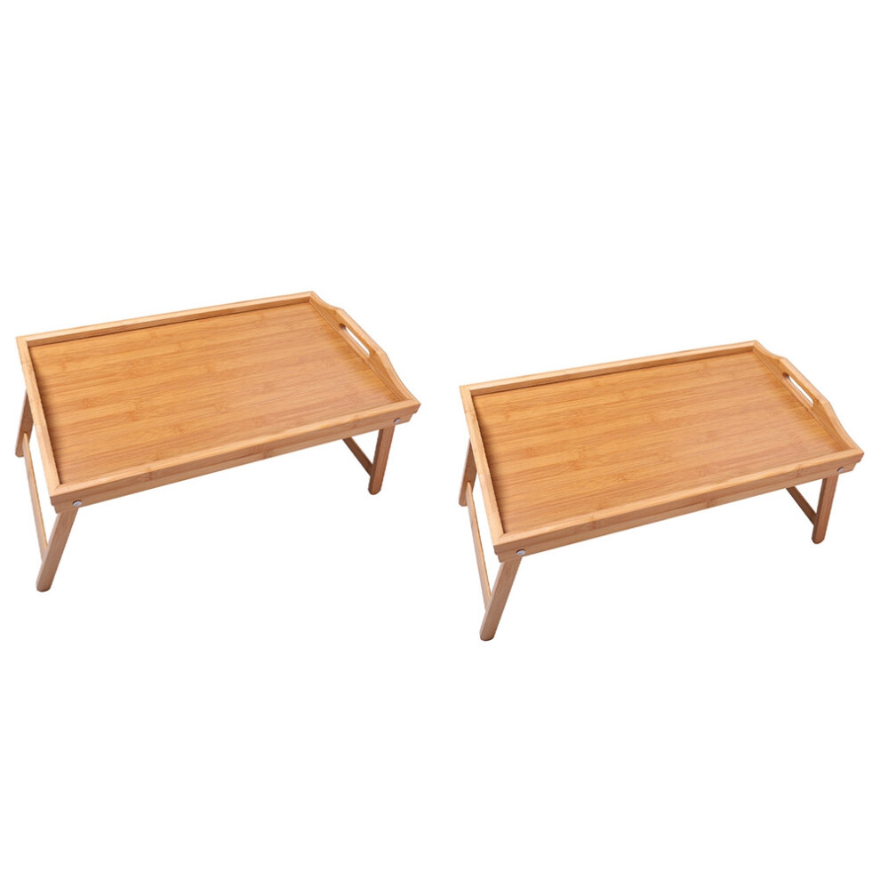 2X Natural Bamboo Breakfast Serving Tray with Handle in Bed or Use As A TV Table Foldable