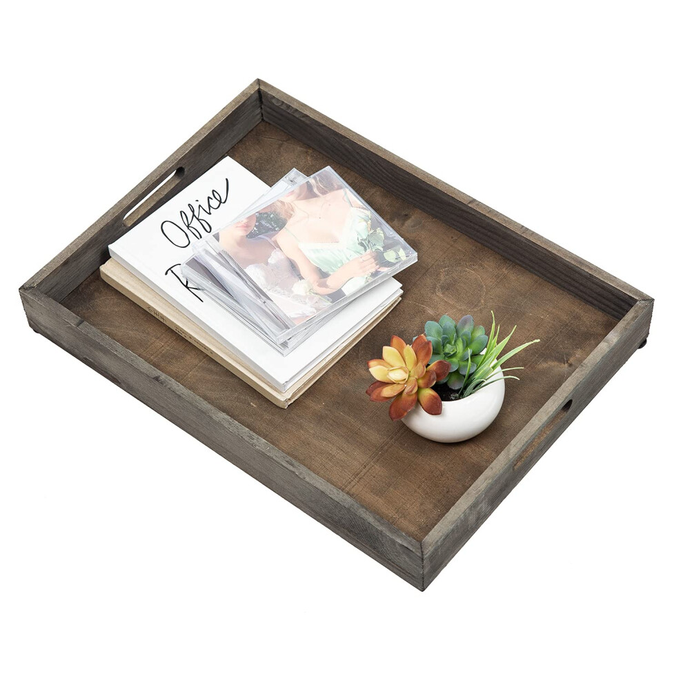 Wood Serving Tray with Handles, Rustic Wooden Tray for Breakfast in Bed, Decorative Ottoman Coffee Table Tray for Living Room Dining Room Use,