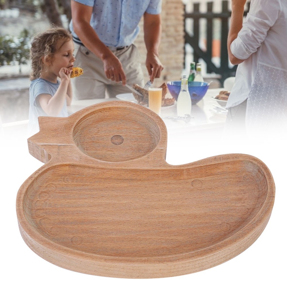 Creative Beech Wood Kids Divided Tray Dish Pizza Plate Duck