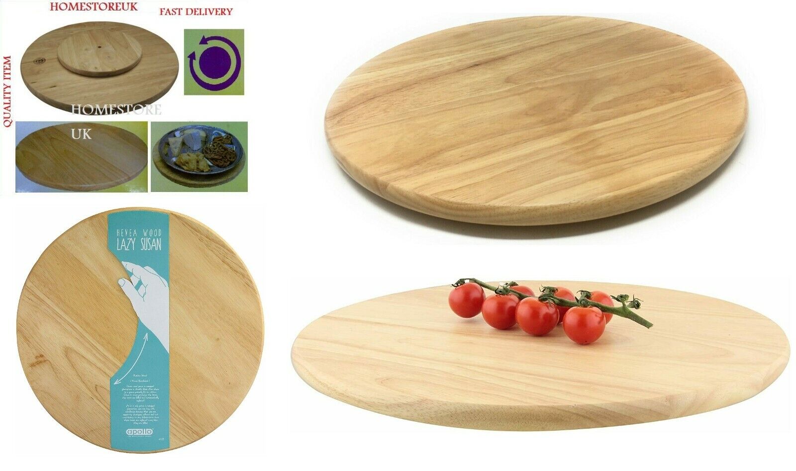LAZY SUSAN ROUND WOODEN REVOLVING ROTATING TURNTABLE TRAY PIZZA CAKE SERVING