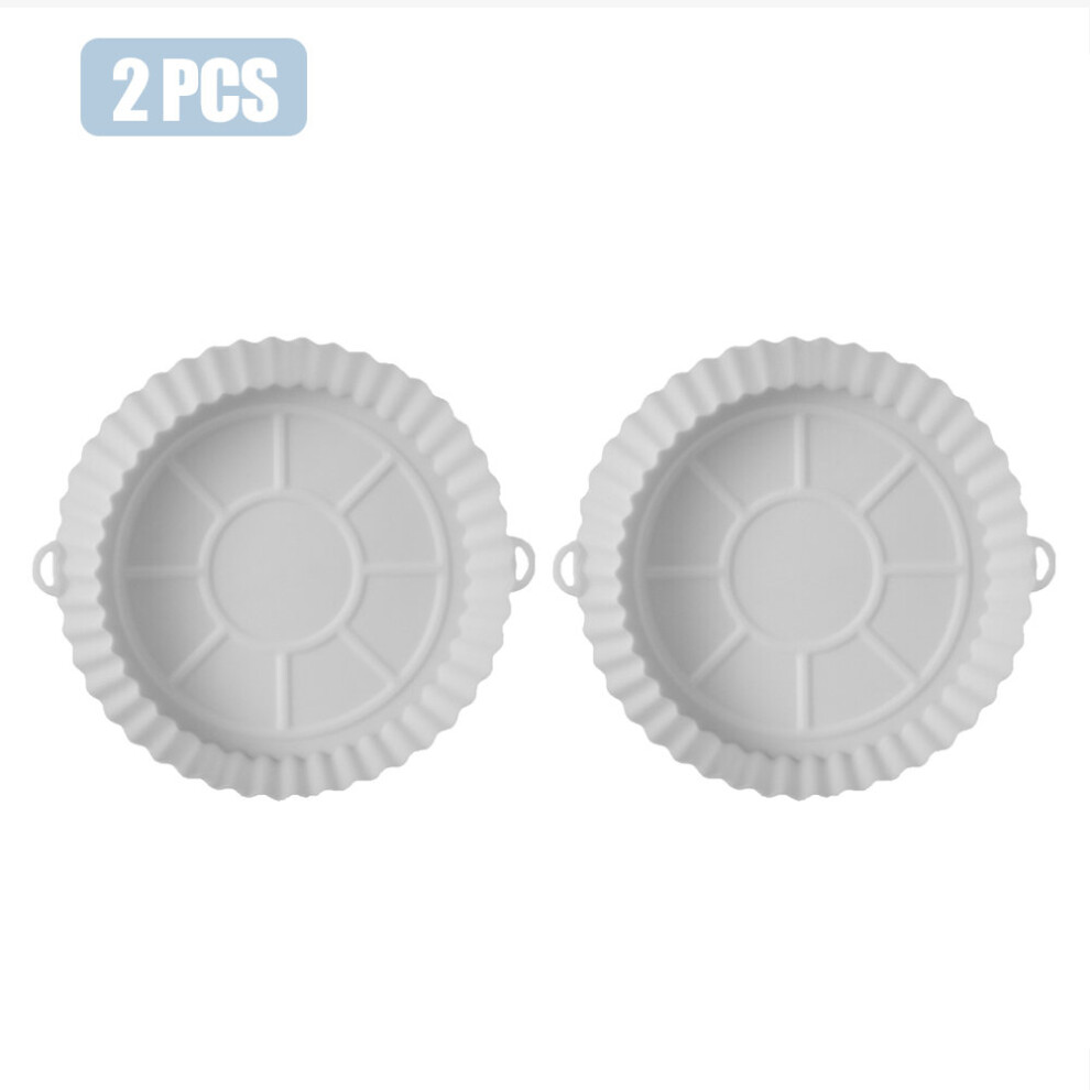 (White 2PCS) 1/2pcs Air Fryer Pot Silicone Reusable Air Fryers Oven Baking Tray For Pizza Air Fryer Accessories Silicone Pan Mat papel freido