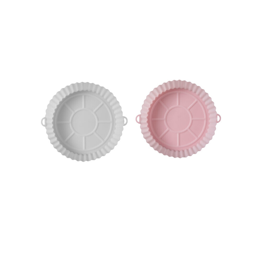 (2Pcs White Pink) Air Fryer Silicone Pot Air Fryers Oven Baking Tray for Pizza Fried Chicken Air Fryer Accessories Round Pan Reusable Mat 1/2Pcs