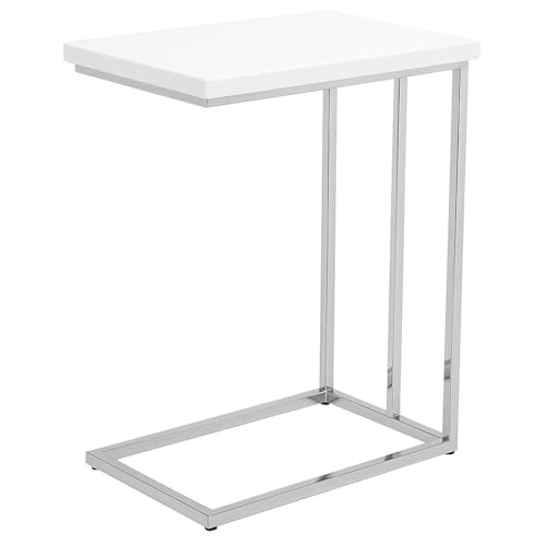 High Gloss C Shaped Side Table White Under Sofa Table End Tables Skinny Snack Tray Table for Coffee Laptop in Living Room Compact Sofa End Table Laptop Desk with Charging Station for Bedroom & Office