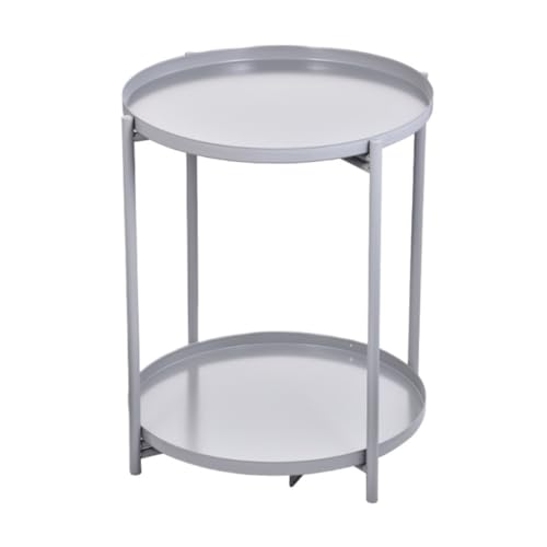 HollyHOME Round Side Table Metal End Table, 2-Tier Tray Snack Table Coffee Table