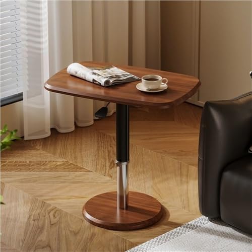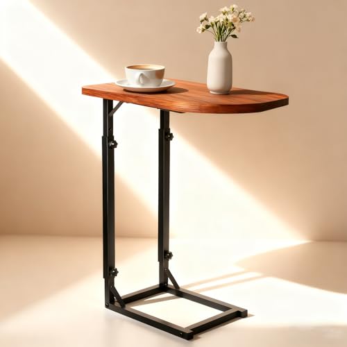 LISHEUK Small Height Adjustable C Shape Coffee Side Table Rotating Sofa Armrest Tray Table Wooden Coffee Table for Living Room Bedroom Bedside Table