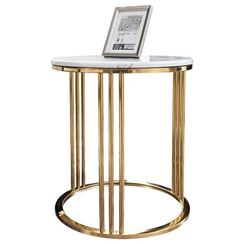 Coffee Table Simple Round Natural Marble Side Table Corner Table, Creative Gold Wrought Iron Tray Mini Coffee Table, Suitable for Living Room Office Small Apartment