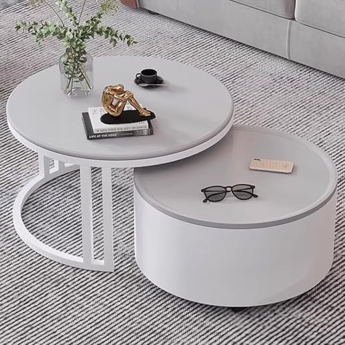 AKALNNB Nesting Coffee Table, 360° Rotating Tea Tray, Coffee Table with Large Storage Space, Retractable, for Living Room Bedroom, White/Black