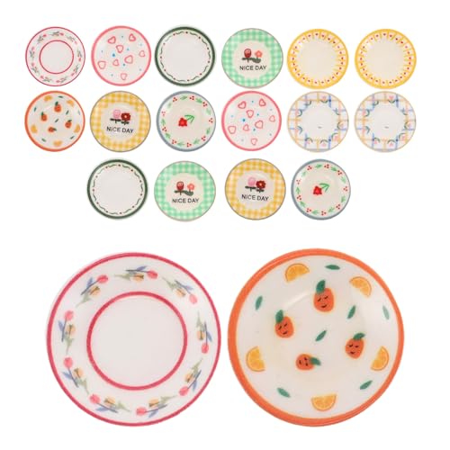 GARVALON 18pcs Dollhouse Tableware Miniature Kitchen Intricate Pattern Plates and Serving Trays for Mini Food Plates and Dollhouse Kitchen Accessories DIY Pretend Play Random Style