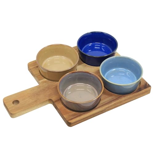 Lesser & Pavey Snack Dishes & Wood Trays for Food Serving | Wood Snacks Serving Platter with Bowls | Colourful Designers Round and Square Food Serving Tray Set of 5 - Elements