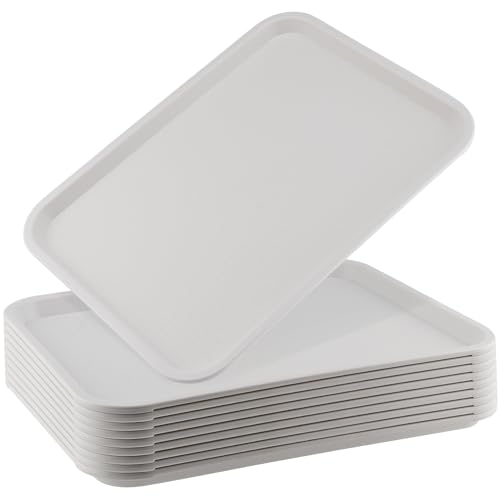 ZOENHOU 10 Pack 14 x 10 Inch Fast Food Tray, 35 x 27cm Rectangular Plastic Restaurant Serving Tray, Plastic Food Trays for Serving Food, White