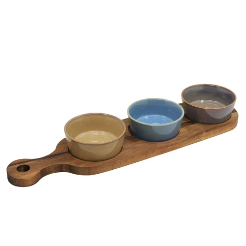 Lesser & Pavey Snack Dishes & Wood Trays for Food Serving | Wood Snacks Serving Platter with Bowls | Colourful Designers Round and Square Food Serving Tray Set of 3 - Elements