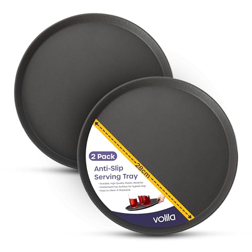 Black Round Tray - 28cm (2 Pack) Rubberized Round Trays for Food Serving and Drinks - Dishwasher Safe Non Slip Tray for Parties, Gatherings, Bars, Restaurants, and Home Use