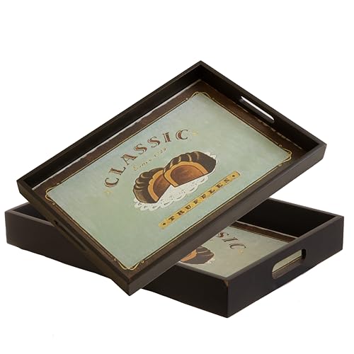 Premier Housewares Versatile Set Of Two Assorted Design Trays | Assorted Design Wooden Trays For Kitchen | Durable Serving Tray For Lunch | Lightweight Trays For Food Serving
