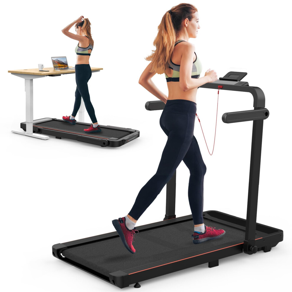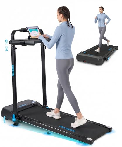 2 in 1 Treadmills for Home Foldable, Kitopa 2.5HP Quiet Folding Treadmill with APP & Bluetooth, Wide Running Belt, LCD Monitor, Assembly-Free 12km/h
