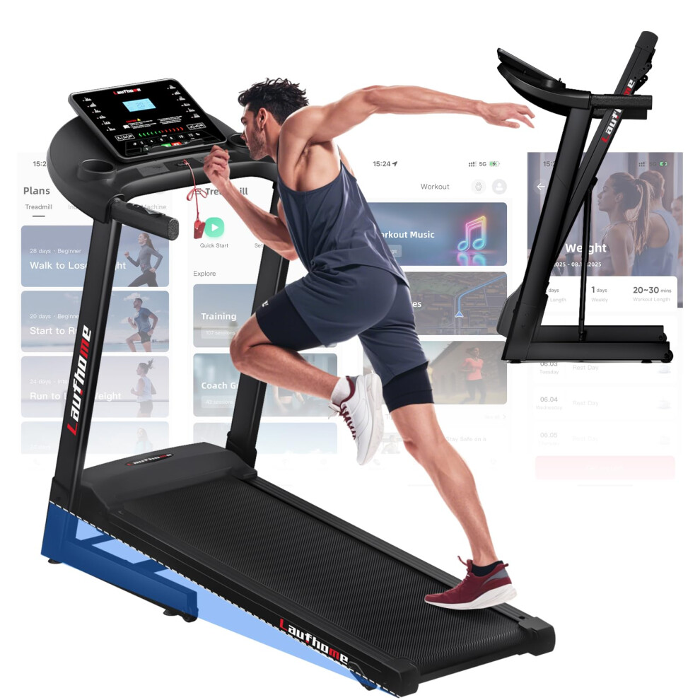 Laufhome Treadmill Foldable for Home, 3 Levels Manual Incline Running Machine Treadmill with Bluetooth APP, 12KMPH, 3.25HP, Multi-functional Display