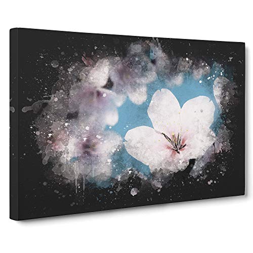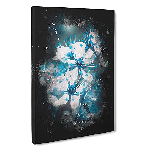 Blue Cherry Tree Flowers Paint Splash Canvas Print | Gallery Wrapped 30mm Frame Wall Art | 30x20 inches | Ready to Hang | Modern Floral Picture | Living Room Bedroom Lounge Office