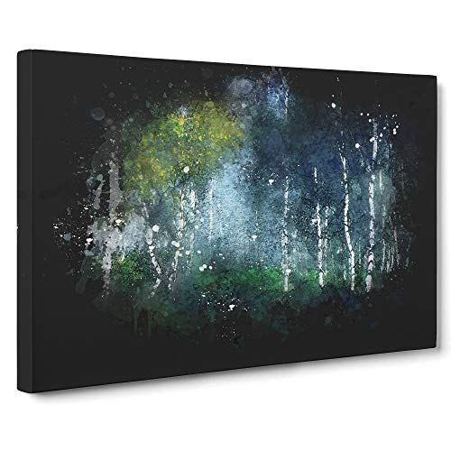 Wonderous Birch Tree Forest Paint Splash Canvas Print | Gallery Wrapped 30mm Frame Wall Art | 30x20 inches | Ready to Hang | Modern Landscape Picture | Living Room Bedroom Lounge Office