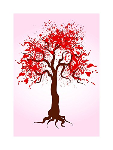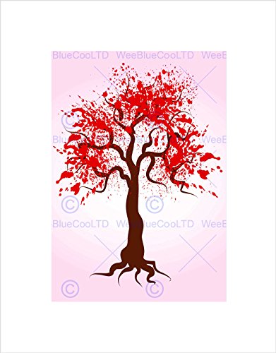Wee Blue Coo Painting Tree Red Paint Splash Leaves Branches Cool Wall Art Print