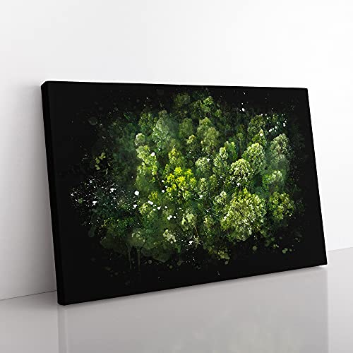 Big Box Art Green Tree Tops Paint Splash Canvas Wall Art Print Ready to Hang Picture, 76 x 50 cm (30 x 20 Inch), Black, Brown, Red