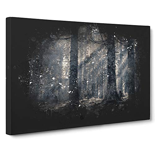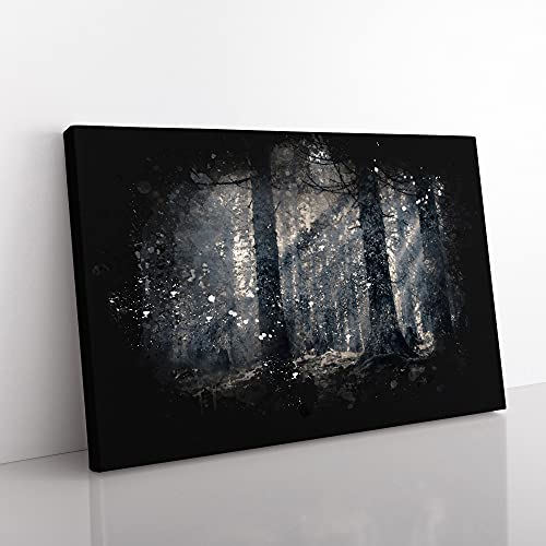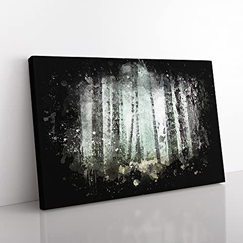 Big Box Art Pine Tree Forest Paint Splash Canvas Wall Art Print Ready to Hang Picture, 76 x 50 cm (30 x 20 Inch), Black, Grey