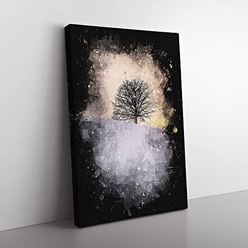 Big Box Art Tree Alone Sunset Paint Splash Canvas Wall Art Print Ready to Hang Picture, 76 x 50 cm (30 x 20 Inch), Lavender, Purple, Violet, Plum
