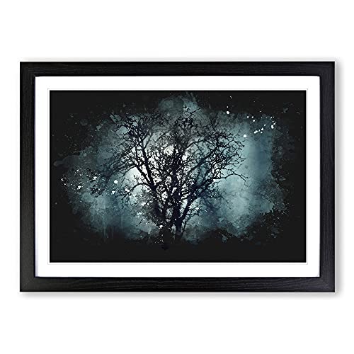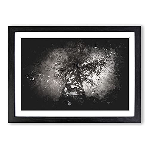 Big Box Art Tree at Dusk Paint Splash Framed Wall Art Picture Print Ready to Hang, Black A2 (62 x 45 cm)