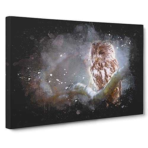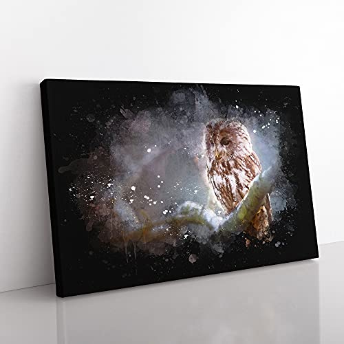 Owl Upon a Tree Branch Paint Splash Canvas Print for Living Room Bedroom Home Office Décor, Wall Art Picture Ready to Hang, 30 x 20 Inch (76 x 50 cm)