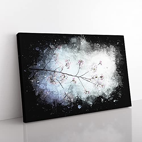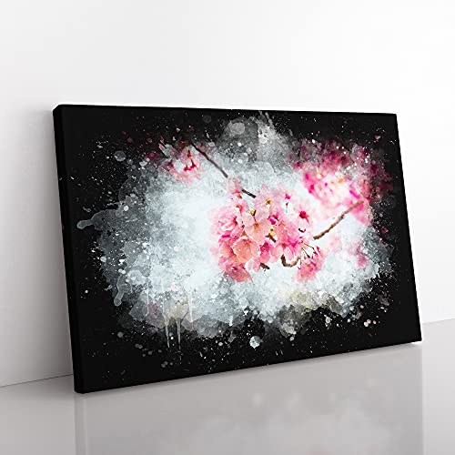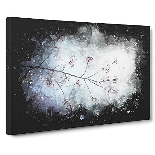Big Box Art Cherry Blossom Tree in Bloom Paint Splash Canvas Wall Art Print Ready to Hang Picture, 76 x 50 cm (30 x 20 Inch), White, Grey, Black