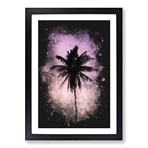 Summer Palm Tree Paint Splash Framed Print | A2 Black Framed Wall Art | Ready to Hang | Modern Floral Picture | Living Room Bedroom Lounge Office