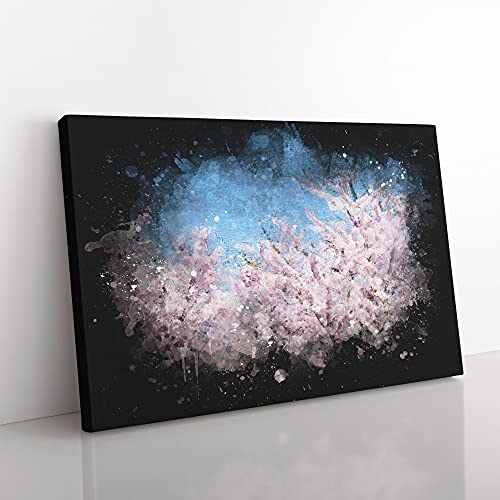 Pink Sakura Blossom Tree in Bloom Paint Splash Canvas Print for Living Room Bedroom Home Office Décor, Wall Art Picture Ready to Hang, 30 x 20 Inch (76 x 50 cm)