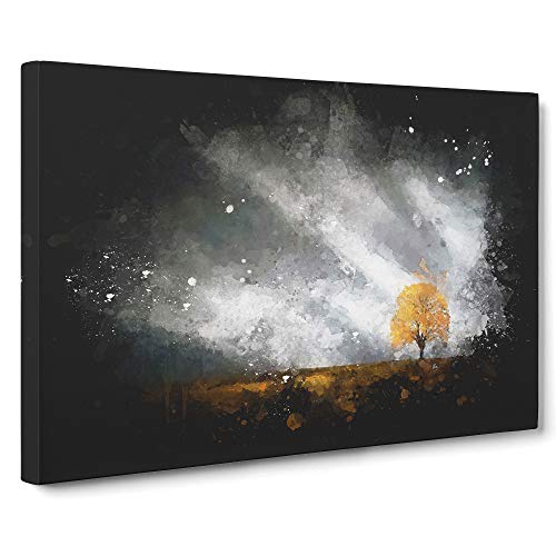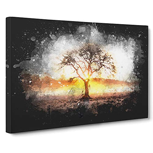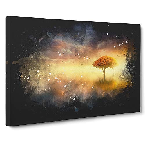 Lone Tree at Dusk Paint Splash Canvas Print | Gallery Wrapped 30mm Frame Wall Art | 30x20 inches | Ready to Hang | Modern Landscape Picture | Living Room Bedroom Lounge Office