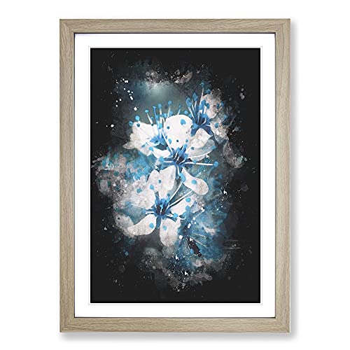 Big Box Art Blue Cherry Tree Flowers Paint Splash Framed Wall Art Picture Print Ready to Hang, Oak A2 (62 x 45 cm)