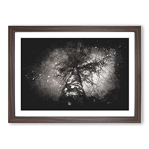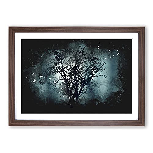 Big Box Art Tree at Dusk Paint Splash Framed Wall Art Picture Print Ready to Hang, Walnut A2 (62 x 45 cm)