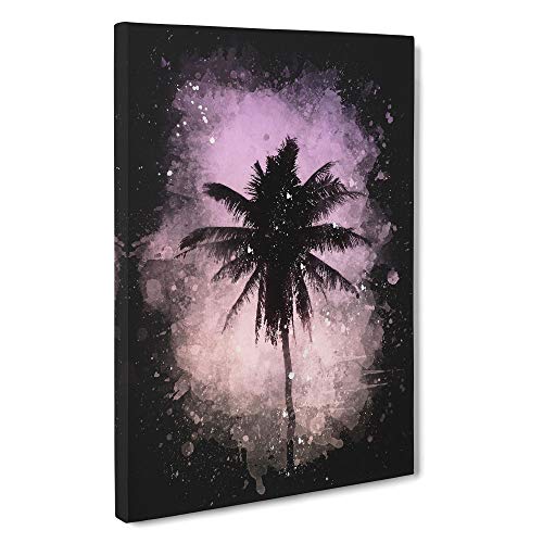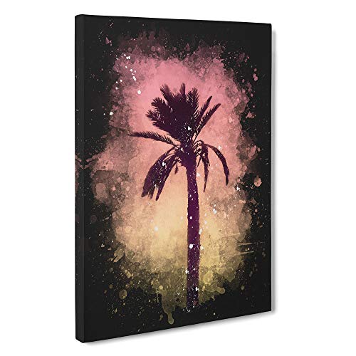 Palm Tree in California Paint Splash Canvas Print | Gallery Wrapped 30mm Frame Wall Art | 30x20 inches | Ready to Hang | Modern Floral Picture | Living Room Bedroom Lounge Office